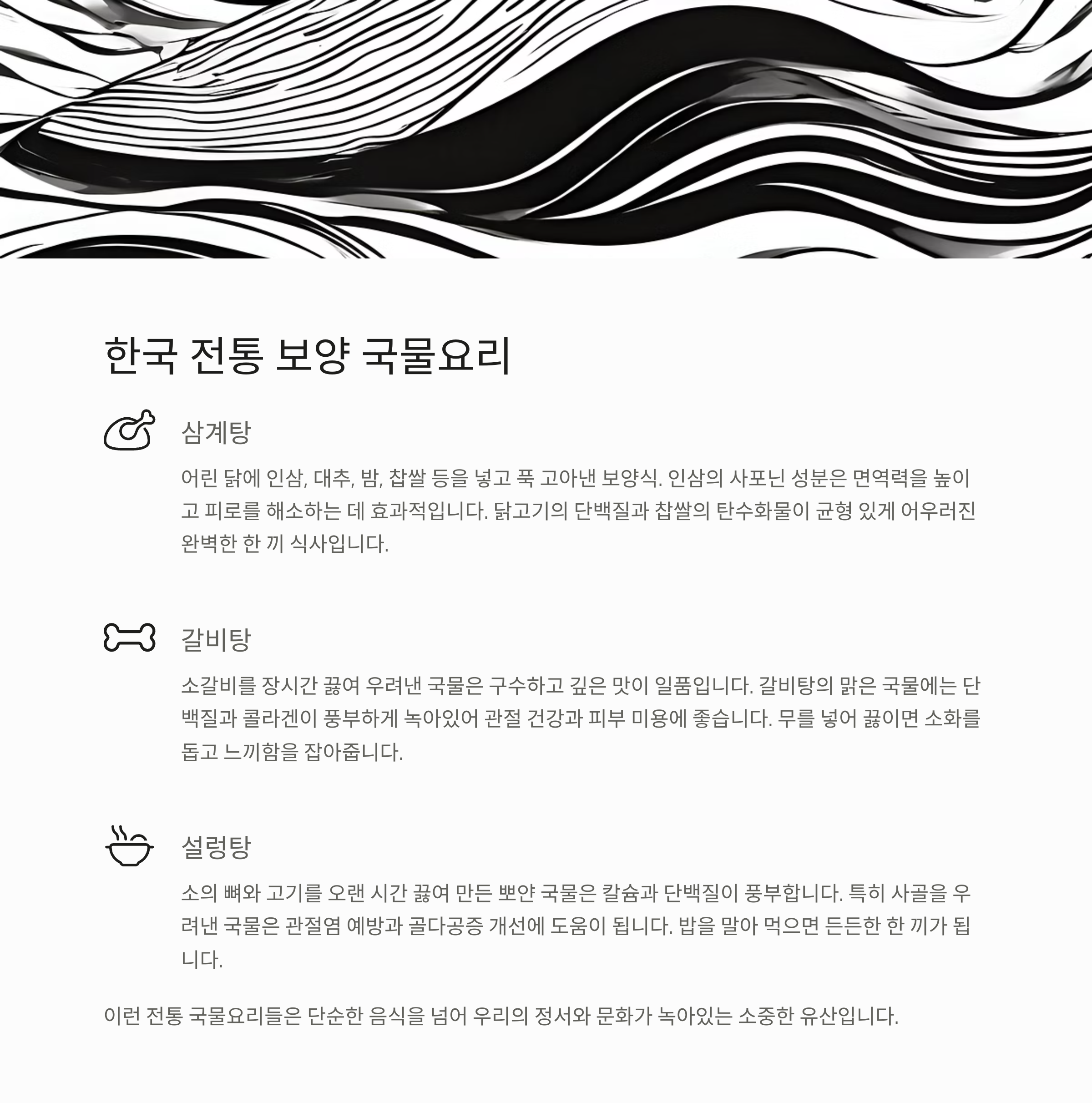 🍲 한국 전통 보양 국물요리