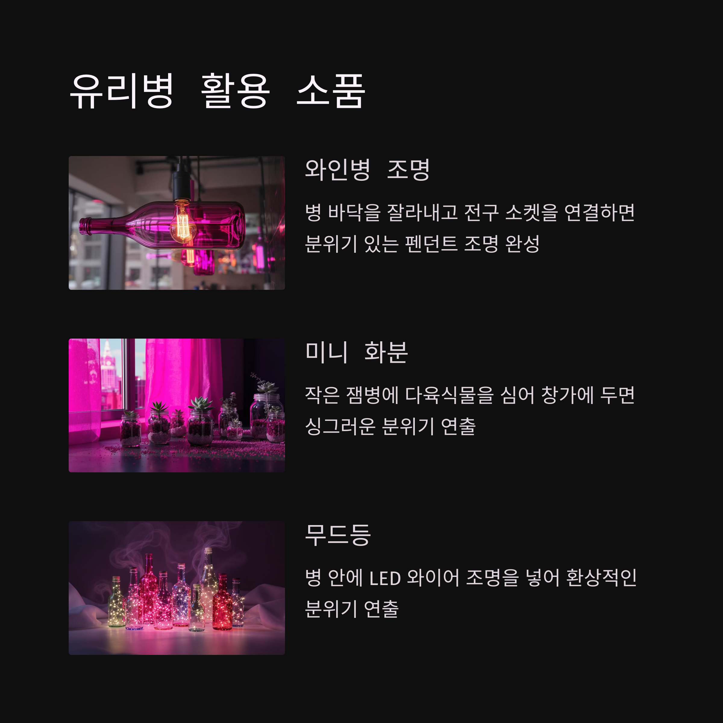 | 와인병 | 펜던트 조명, 캔들 홀더 | 중급 |