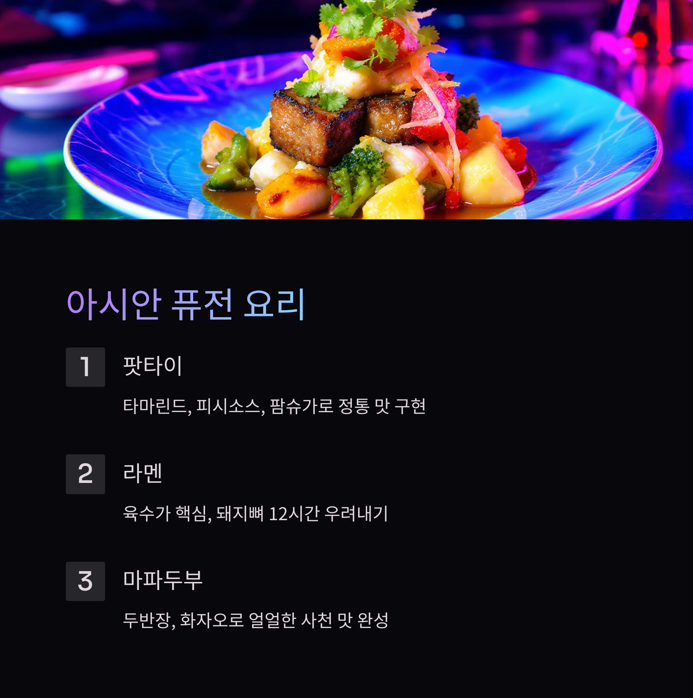 아시안 퓨전 레스토랑의 인기 메뉴들을 집에서 만들어보세요! 태국의 팟타이, 일본의 라멘, 중국의 마파두부, 베트남의 쌀국수까지, 아시아 각국의 대표 요리를 현대적으로 재해석한 레시피를 소개합니다. 특별한 향신료와 소스 만드는 법부터 정통 조리 기법까지 상세히 알려드릴게요!